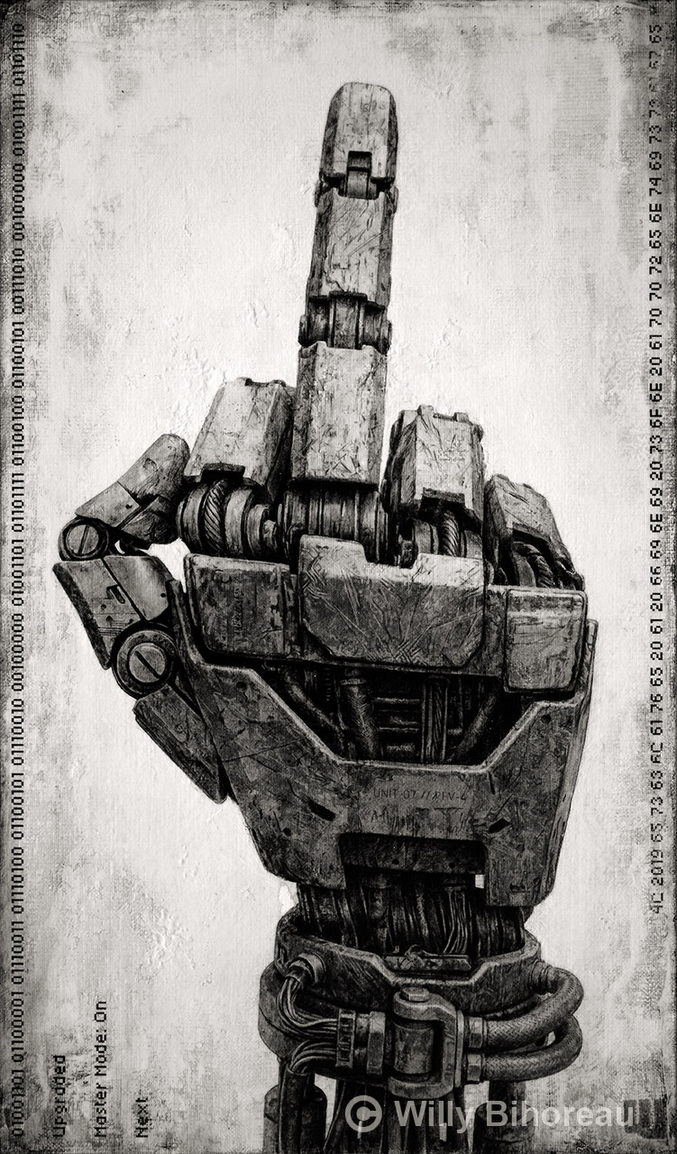 « La peinture de Willy Bihoreau nous embarque dans un univers sombre et mortifère étrangement familier. L’effondrement, inéluctable, a bien eu lieu, dévoilant un futur froid et silencieux. Parmi les ruines et les vestiges de notre civilisation en décomposition plane encore l’empreinte fantomatique d’une humanité déchue. »